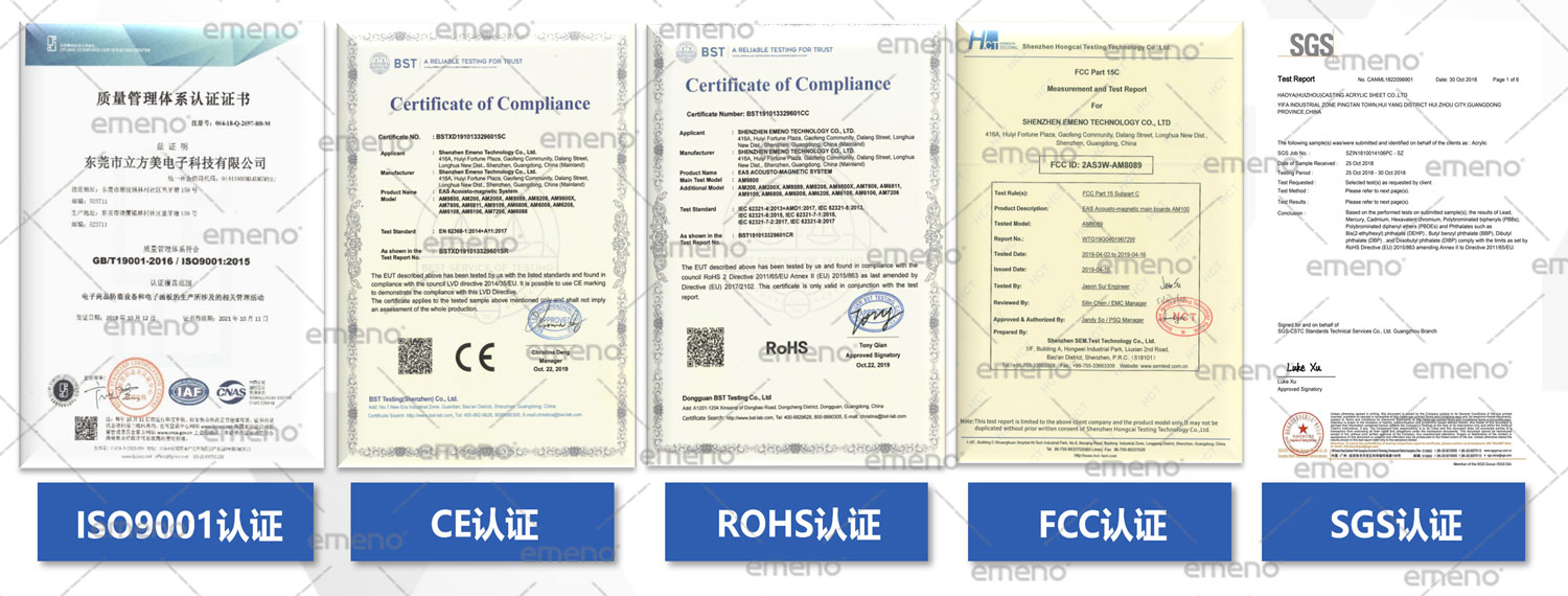 公司先后通过ISO9001认证,CE认证,ROHS认证,FCC认证,SGS认证。是行业为数不多的资质齐全的企业!