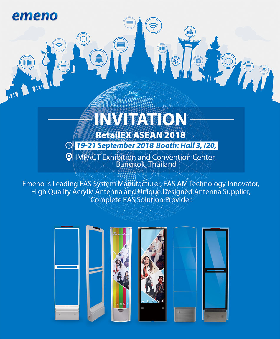 零售2018在3厅,I20,泰国,从2018年9月19日至21日。凭借优雅的天线,强大的AM技术和人员计数系统,Emeno随时准备为您提供智能商店的想法。