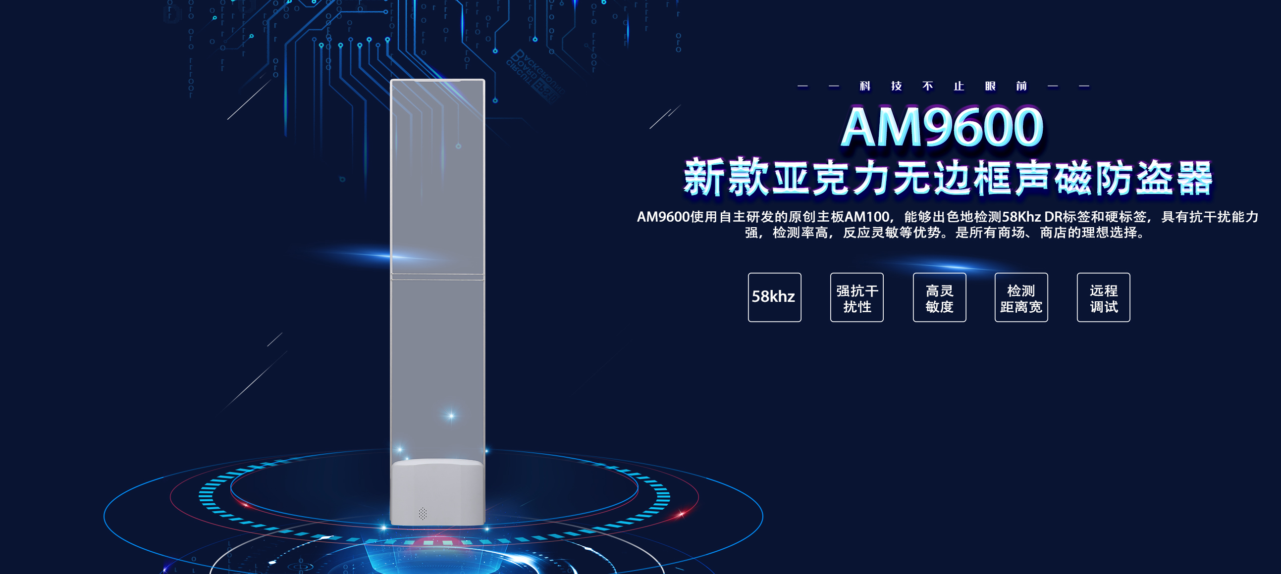 AM9600能够出色的检测58Khz DR软标签和硬标签。两支防盗天线之间的检测距离可高达软标签1.4-1.6米, 硬标签1.6-2.2米,是宽出口或多个出口的商店的理想选择。