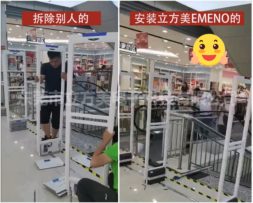 以下是我司客户的真实案例!超市开业后启动防盗装置,但由于电梯对于防盗设备的干扰性很强,而安装的防盗器抗干扰性能太差,所以设备安装在电梯旁,完全不工作!最后客户只能把已经安装好的防盗器全部拆掉,重新安装上立方美emeno的设备!环境中能对防盗器造成干扰的因素实在太多了,不仅是电梯,还有各种电器、电源开关、电线等都会对防盗器造成一定的干扰,所以选对抗干扰性能强的防盗器,至关重要!