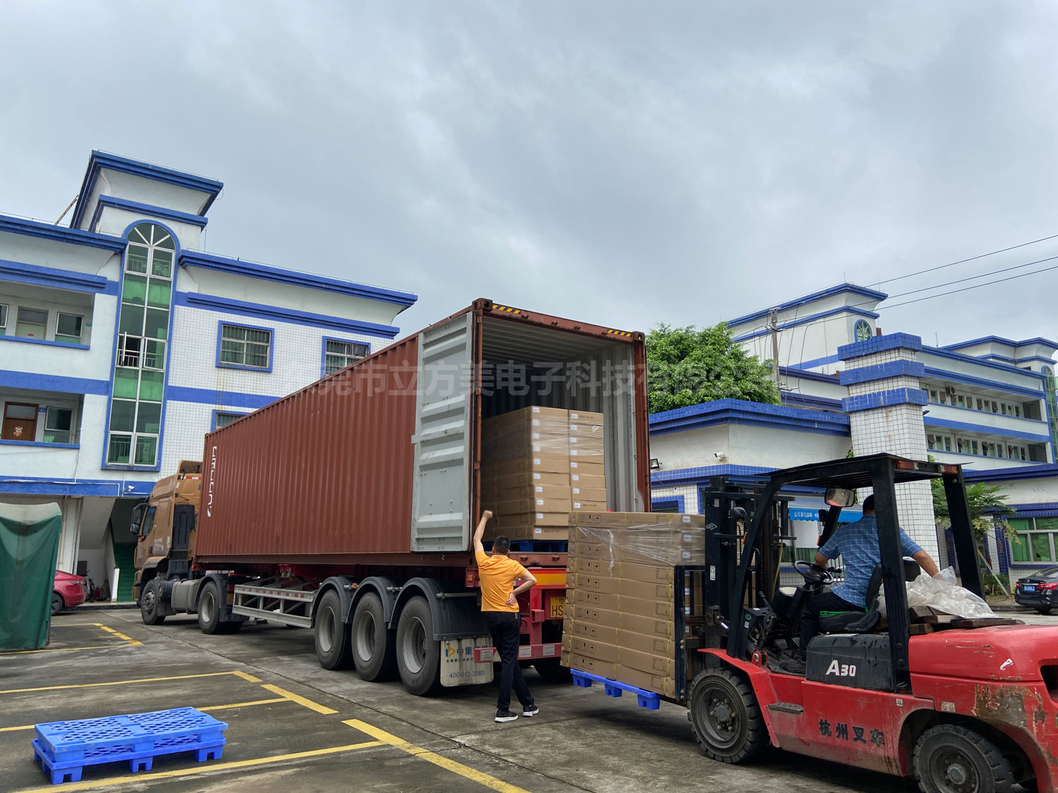 6月9日早上8点,立方美员工就已开始了超市防盗器的装柜行动,近来常常有雨,今天也不例外,出货途中便又下了几场雨,让出货变得更加艰难,历经2个半钟,终于把超市防盗器全部装完!