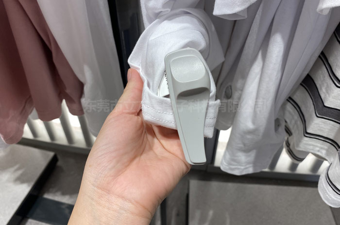 拖鞋型硬标签是除了榔头扣之外用得最多的一种防盗硬标签,它的外型像拖鞋所以叫拖鞋型标签,拖鞋标签不能用普通的解扣器解开,只能用手动开锁器或者电子开锁器才能打开,所以这种硬标签不容易被小偷打开。