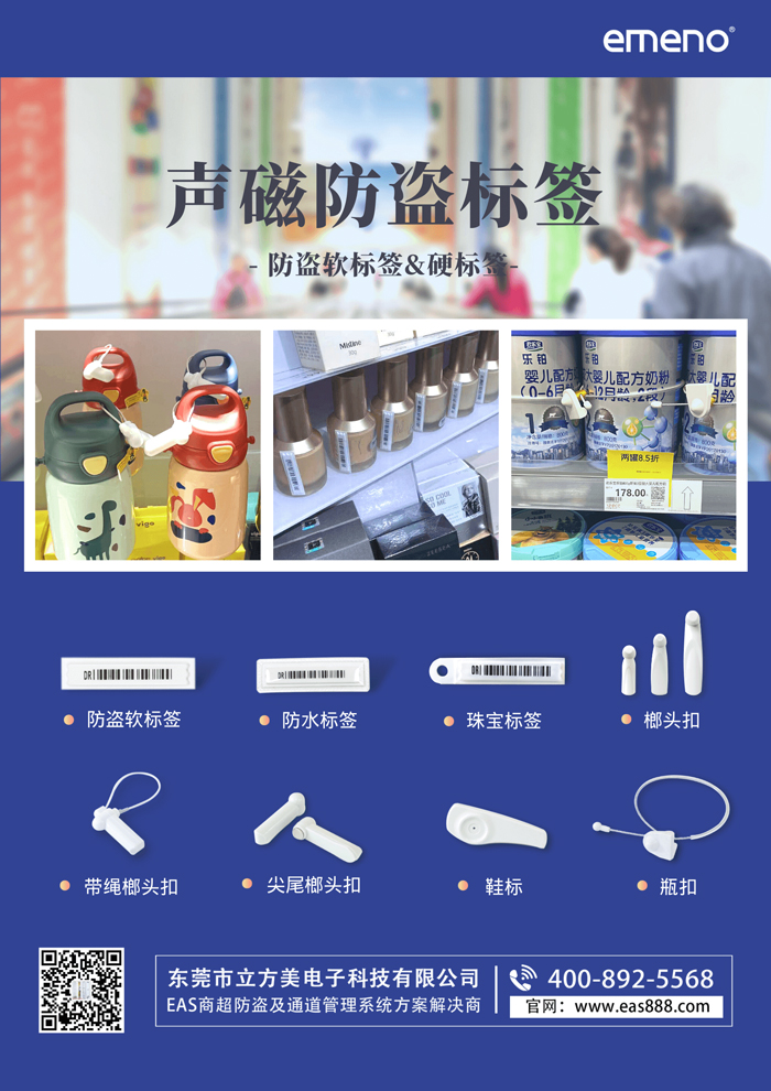 立方美emeno拥有品类齐全的防盗标签产品,如防盗软标签、防水标签、珠宝防盗标签、小榔头、中榔头、大榔头、带绳榔头扣、鞋标、酒瓶扣、奶粉扣、蜘蛛标签、墨水标签、眼镜标签、异形标签等等。所有的防盗标签质量可靠,可根据店铺的实际情况提供专业的防盗标签选用方案。如果您有任何关于防盗标签的需求,欢迎联系:18925223556。
